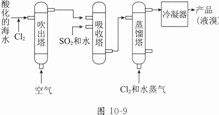 7. 溴及其化合物在生产中有广泛应用。工业上常用吹出法从海水中提取溴,其工艺流程示意图如图10-9所示。