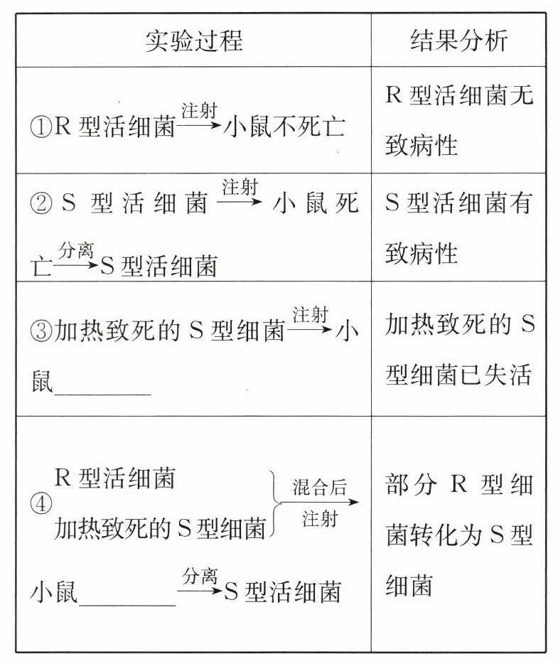 (2) 实验结论:已经加热致死的S型细菌,含有某种促使R型活细菌转化为S型活细菌的活性物质——