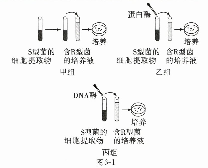 7. 为探究什么物质使肺炎链球菌发生转化,某学习小组进行了肺炎链球菌体外转化实验,其基本过程如图6-1所示。下列叙述正确的是(