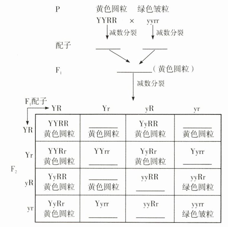 (1)YR yr YyRr YYRr YyRr 黄色皱粒 黄色皱粒 YyRr 绿色圆粒 黄色皱粒 绿色圆粒