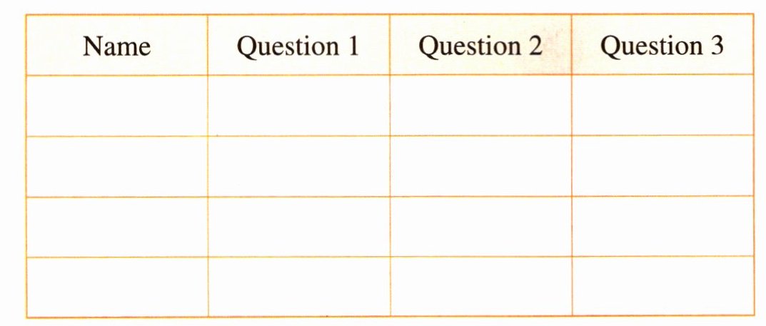 我们的父母经常给我们一些零花钱。但是我们应该如何利用好它呢?就以下问题对你的朋友进行提问,并完成表格。