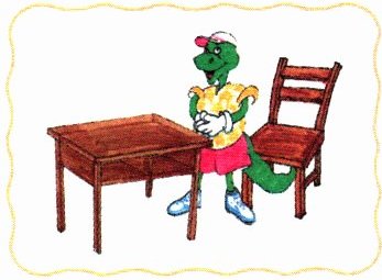 ) Danny is between the desk and the chair.(