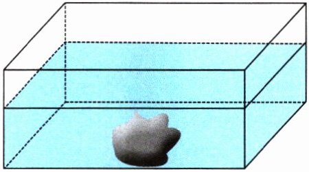 步骤三:把这块不规则石头放入玻璃缸中,发现水完全淹没这块不规则石头,但并没有溢出玻璃缸。