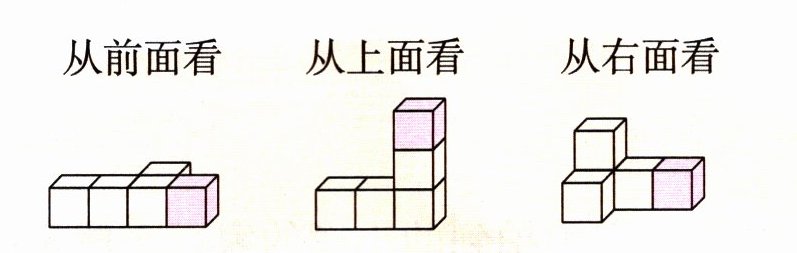 (2)添加粉色小正方体后,从指定的方向看,如果看到的图形不变,就在相应的括号里画“√”。