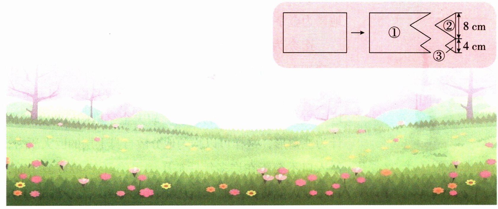 (2) 如下图,在一张长20cm、宽12cm的长方形纸上剪去两个等边三角形②和③后,刚好剩下图形①,那么图形①的周长是多少厘米?
