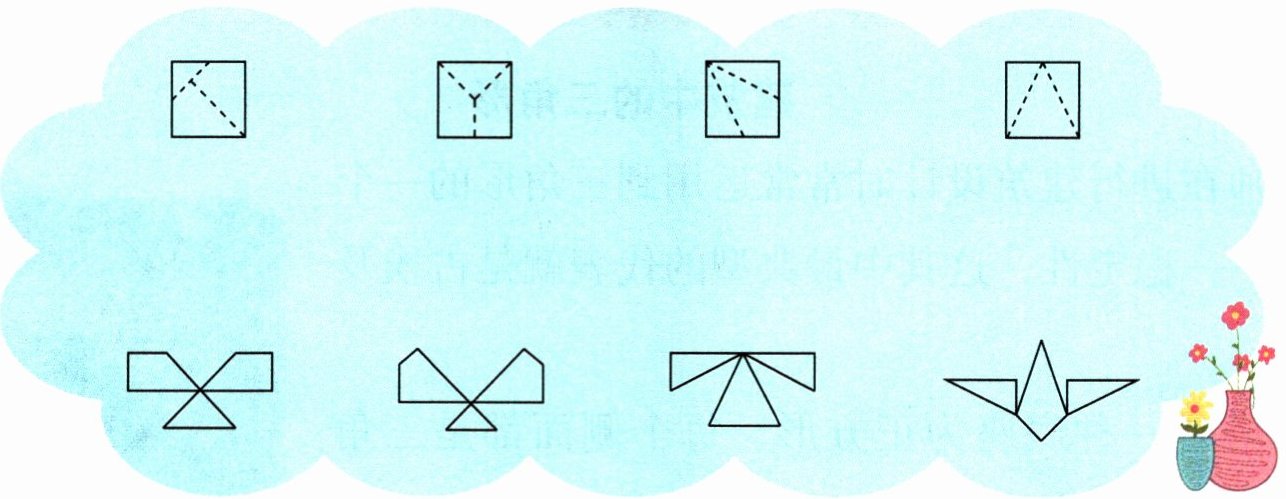(1) 将下面第一排的正方形沿虚线剪开,拼成下面第二排的图形,请把它们与对应的图形连起来。