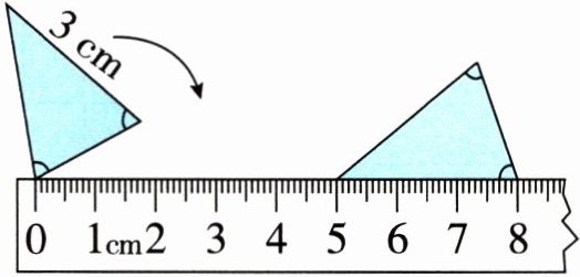 (1) 一个等腰三角形平放在桌面上,将它的三条边紧贴着直尺边沿,从刻度0开始转一圈,如下图,则这个三角形的底边长是(