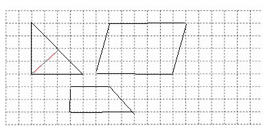 ③直角梯形:可以选择从左往右数第9条竖线和从上往下数第1条横线的交点作为直角梯形的一个顶点,然后沿着横线向右数2个单位长度,再向下数2个单位长度作为高的另一个端点,接着从第一个顶点向下数任意单位长度(比如3个单位)作为梯形的另一个顶点,最后连接各个顶点形成一个直角梯形。