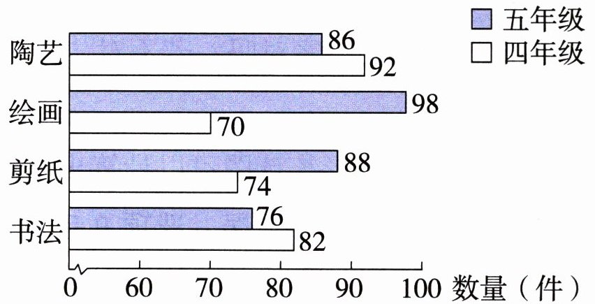 (3)下面是四、五年级学生展出的艺术作品数量统计图,下列说法错误的是(