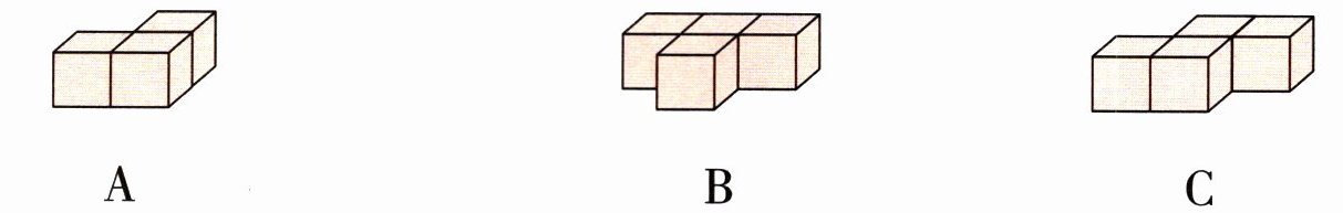 1. 用5个小正方体搭成的立体,从前面看到的图形是