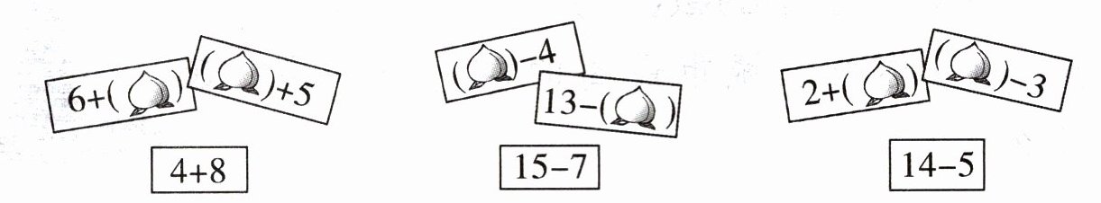 三、下面每组算式中得数相同,你能填出被桃子遮住的shù ma