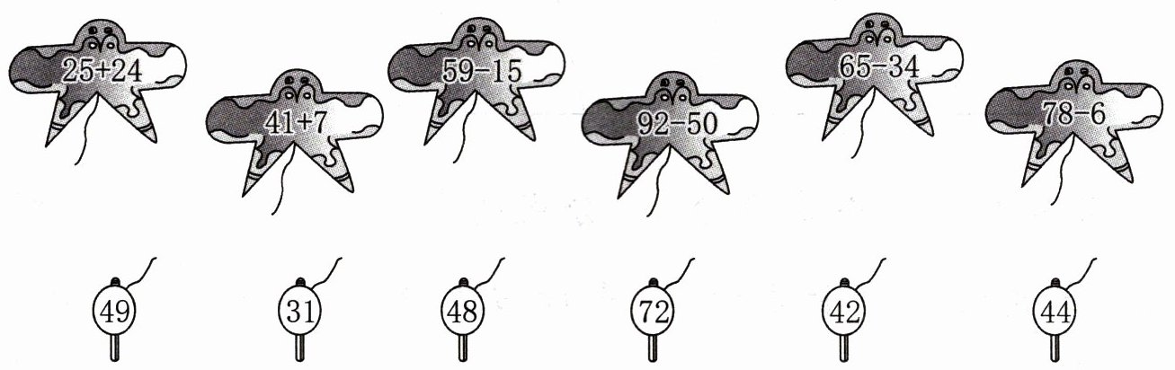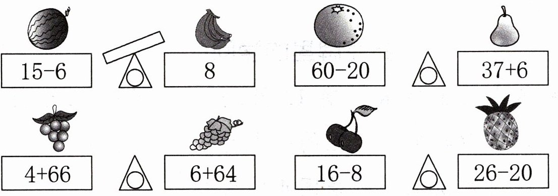 三、先计算,再照样子画跷跷板。