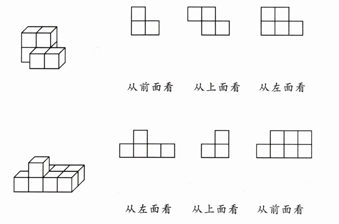 三、下面各图分别是从哪个方向观察得到的? 连一连。
