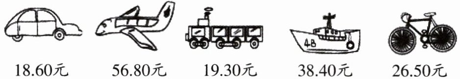 情况1:买玩具车和玩具飞机,18.60+56.80=75.40元