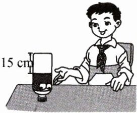 2. 一个饮料瓶(如图)装满果汁,张华喝了一些,把瓶盖拧紧后倒置放平,无饮料的部分高15cm,从内部测量饮料瓶的半径是2cm。张华喝了多少毫升果汁?