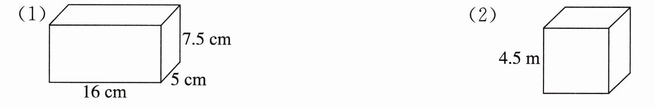 综上,(1)长方体表面积为$475\mathrm{cm}^{2}$;(2)正方体表面积为$121.5\mathrm{m}^{2}$。