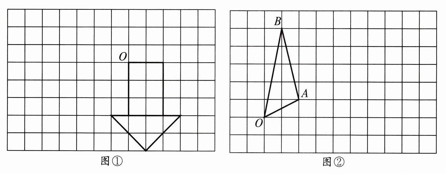 2. 画出图②中的三角形AOB绕点A顺时针旋转$90^{\circ}$后得到的图形。