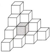 (2)取走哪个小正方体后,从正面、上面、左面看到的图形仍然保持不变? 请你把那个取走的小正方体涂色。
