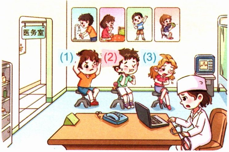 (1)headache (2)toothache (3)stomachache