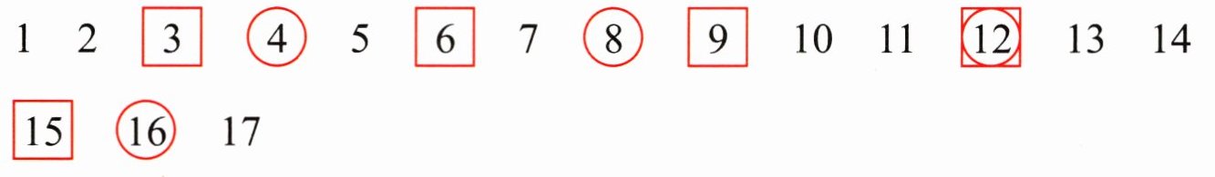 珍奇:17以内3的倍数:3、6、9、