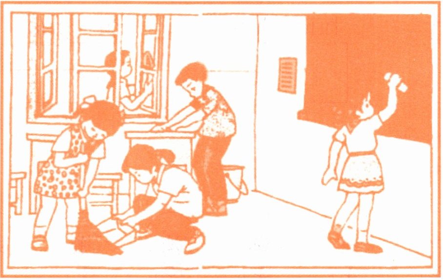 【解析】:本题考查学生看图写话的能力。需要学生仔细观察图片,理解图中人物的动作和场景,然后用自己的语言描述出来。图中可以看到有五个小朋友在教室里进行大扫除,他们各自在做不同的事情,如扫地、擦桌子、擦黑板等。