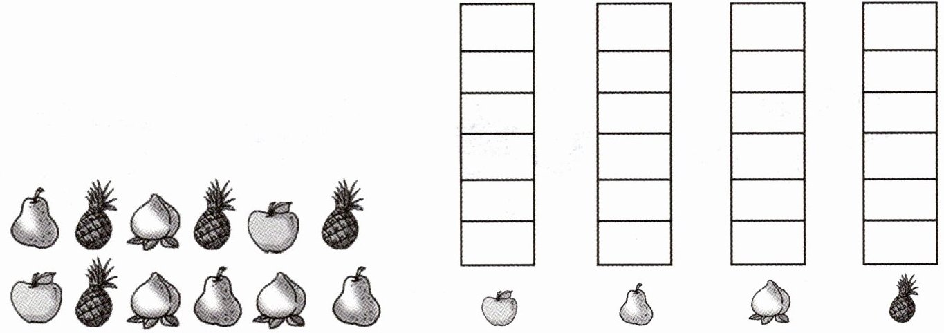把下面的水果分一分,把同一种水果的数量