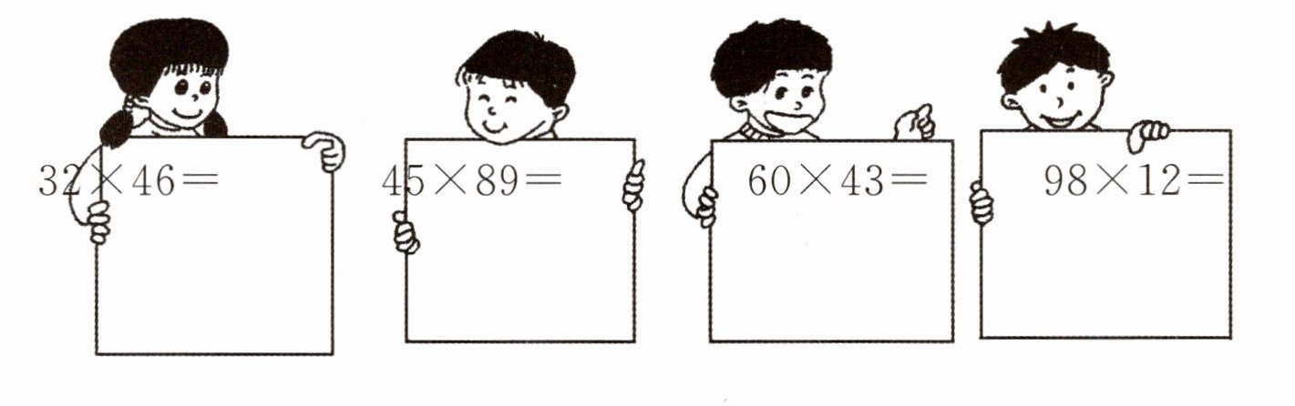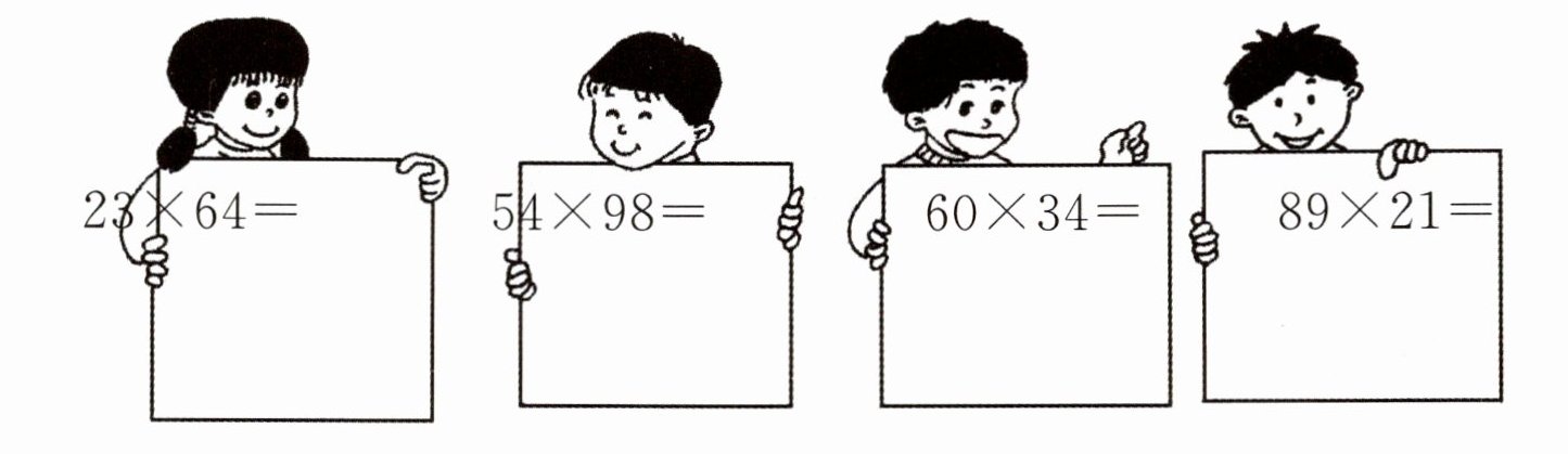 )4. 计算 48×25 时,可以先算出 48×5 的积,再算出 48×20 的积,然后把两次的积相加。(