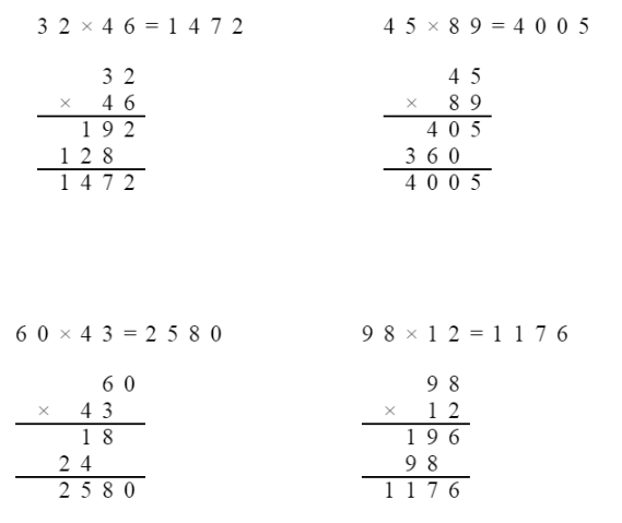 4. 计算 48×25 时,可以先算出 48×5 的积,再算出 48×20 的积,然后把两次的积相加。(