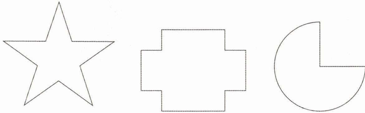 二、用不同颜色的笔先描出每个图形的一周,再涂色表示出它们的面积。