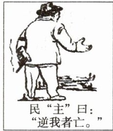 C 解答本题首先要注意时间是“抗战胜利后”,由漫画中“逆我者亡”可以判断出蒋介石政府坚持独裁内战。
