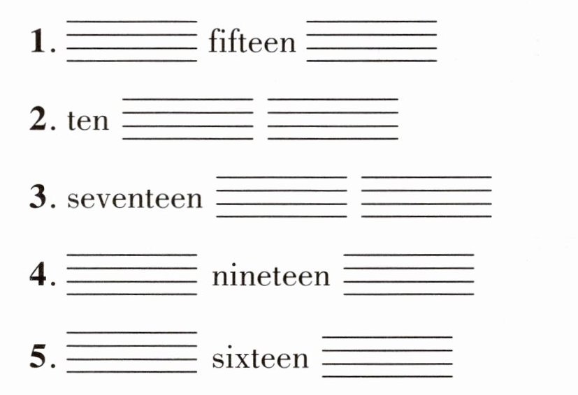 1. twelve 2. Fifteen 3. seventeen 4. twenty 5. eleven