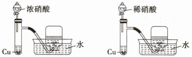 (1)两支具支试管中观察到的实验现象是否完全相同?反应中浓硝酸、稀硝酸起什么作用?