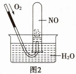 (2)图2试管中观察到的实验现象是什么?NO与$O_{2}$的体积满足怎样的比例,才能使NO完全转化成$HNO_{3}$?