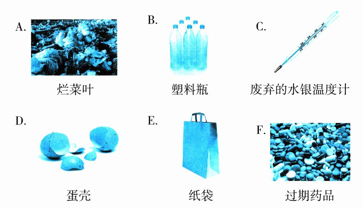 可回收物:BE 有害垃圾:CF 厨余垃圾:AD