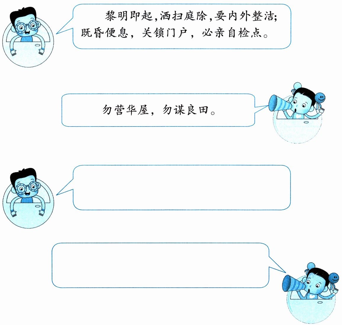 示例:1. 百善孝为先。2. 诚者,天之道也;思诚者,人之道也。(答案不唯一,写出合理的优秀家训即可)