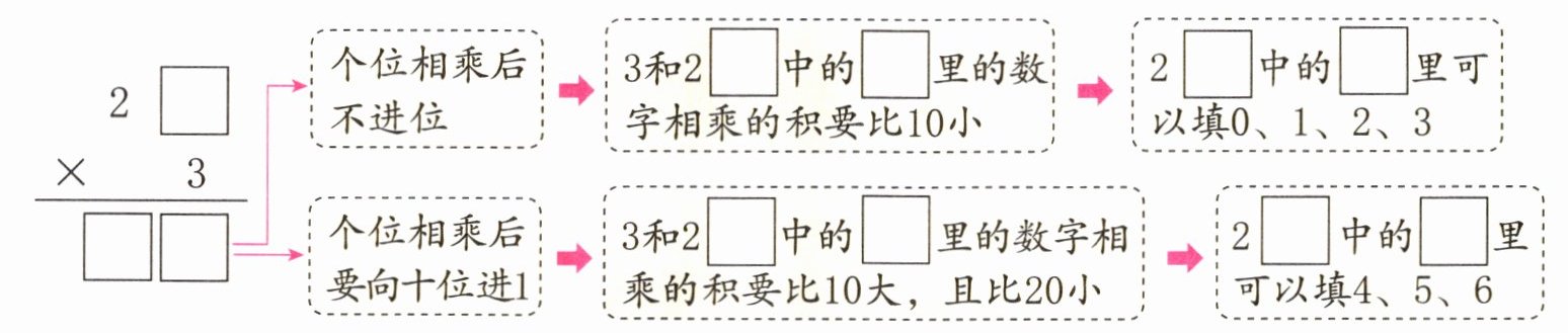 $\begin{array}{r}2□ \\× 3 \\\hline□□\end{array}$