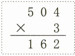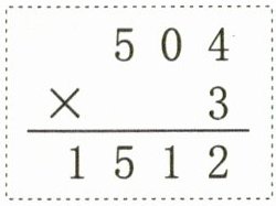 错解分析 错解错在漏掉了3×0这一步的计算,且5个百乘3得15个百,个位进上来的1表示1个十,数位不对应,不能相加。3乘504十位上的0得0,再加上个位进上来的1得1,所以积的十位上应写1。