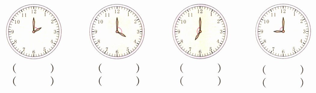 解答(竖排)2 时 $60^{\circ}$ 4 时 $120^{\circ}$ 7 时 $150^{\circ}$ 9 时 $90^{\circ}$