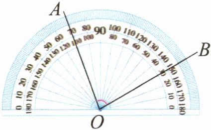 $\begin{cases}OA边对应的刻度是70^{\circ} \\OB边对应的刻度是150^{\circ}\end{cases}$ $\angle AOB=150^{\circ}-70^{\circ}=80^{\circ}$