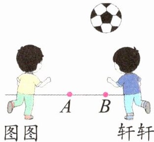 5. 新情境 图图和轩轩进行足球训练,他们以同样的速度分别从点 A 和点 B 跑向足球,你认为谁会先踢到足球?为什么?