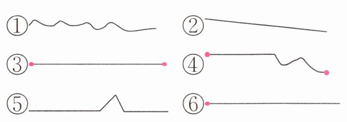 2. 张家口下面的( )是直线,( )是射线,( )是线段。(填序号)