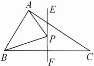 16. (2023·保定高阳县期末)如图,在$\triangle ABC$中,$AB = 6$,$AC = 9$,$EF$垂直平分线段$BC$,$P$是直线$EF$上的任意一点,则$\triangle ABP$周长的最小值是(