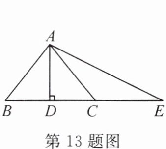13. 如图,$AD \perp BC$,$BD = CD$,点$C$在$AE$的垂直平分线上。若$AB = 5$,$BD = 3$,则$DE$的长为