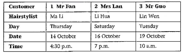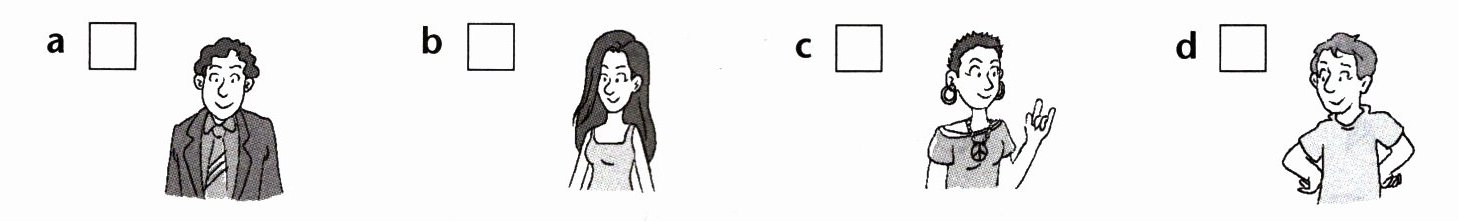 Listen to the customers describing to the hairstylist the kind of hairstyle they want. Look at the pictures that show their new hairstyles. Write the correct number of the customer in each box.