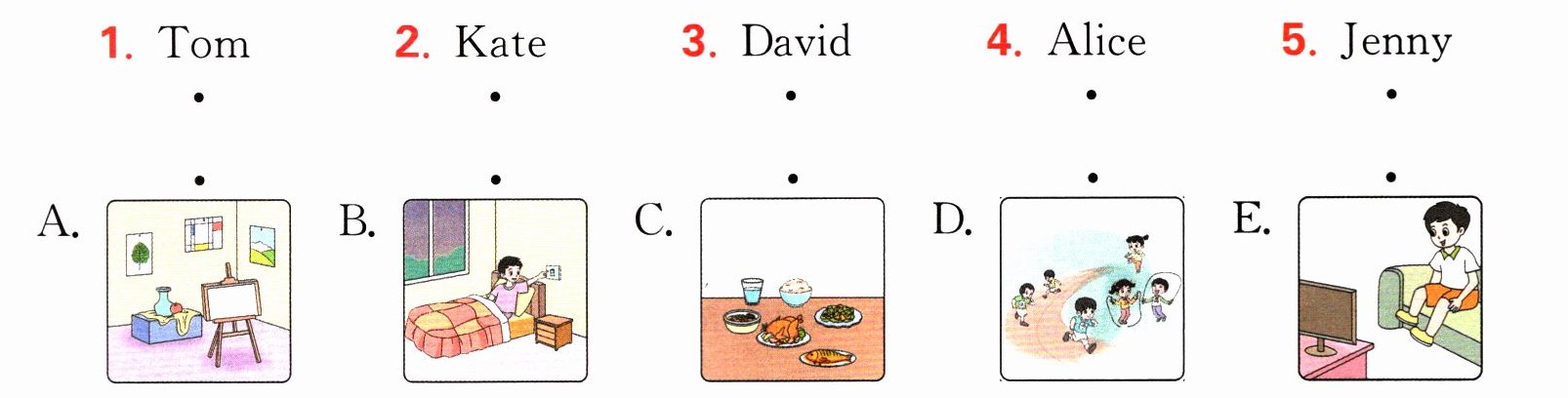 3.B 解析:由David说的“It's time to go to bed.”可知,David准备睡觉。故与图B连线。
