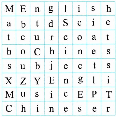 1.Chinese 2.subjects3.English 4.Science5.Maths 6.Music