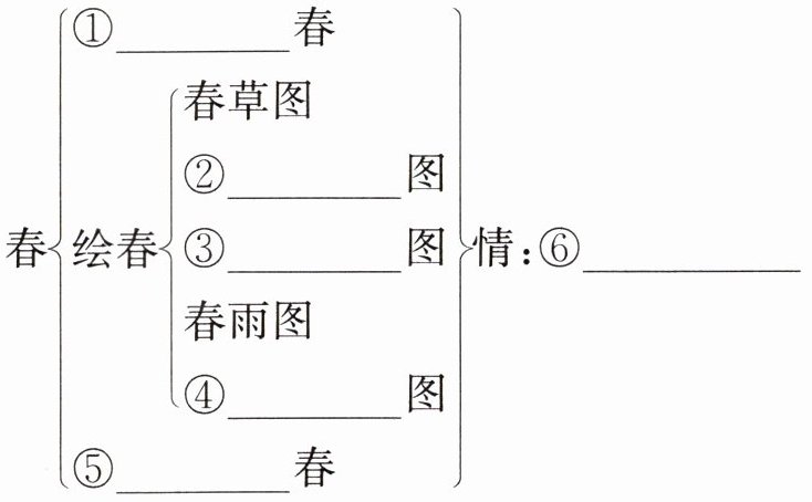 春{①春 绘春{春草图 ②图 ③图 春雨图 ④图 ⑤春}情:⑥
