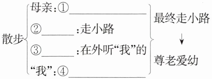 散步{母亲:①______②______:走小路③______:在外听“我”的“我”:④______}最终走小路↓尊老爱幼