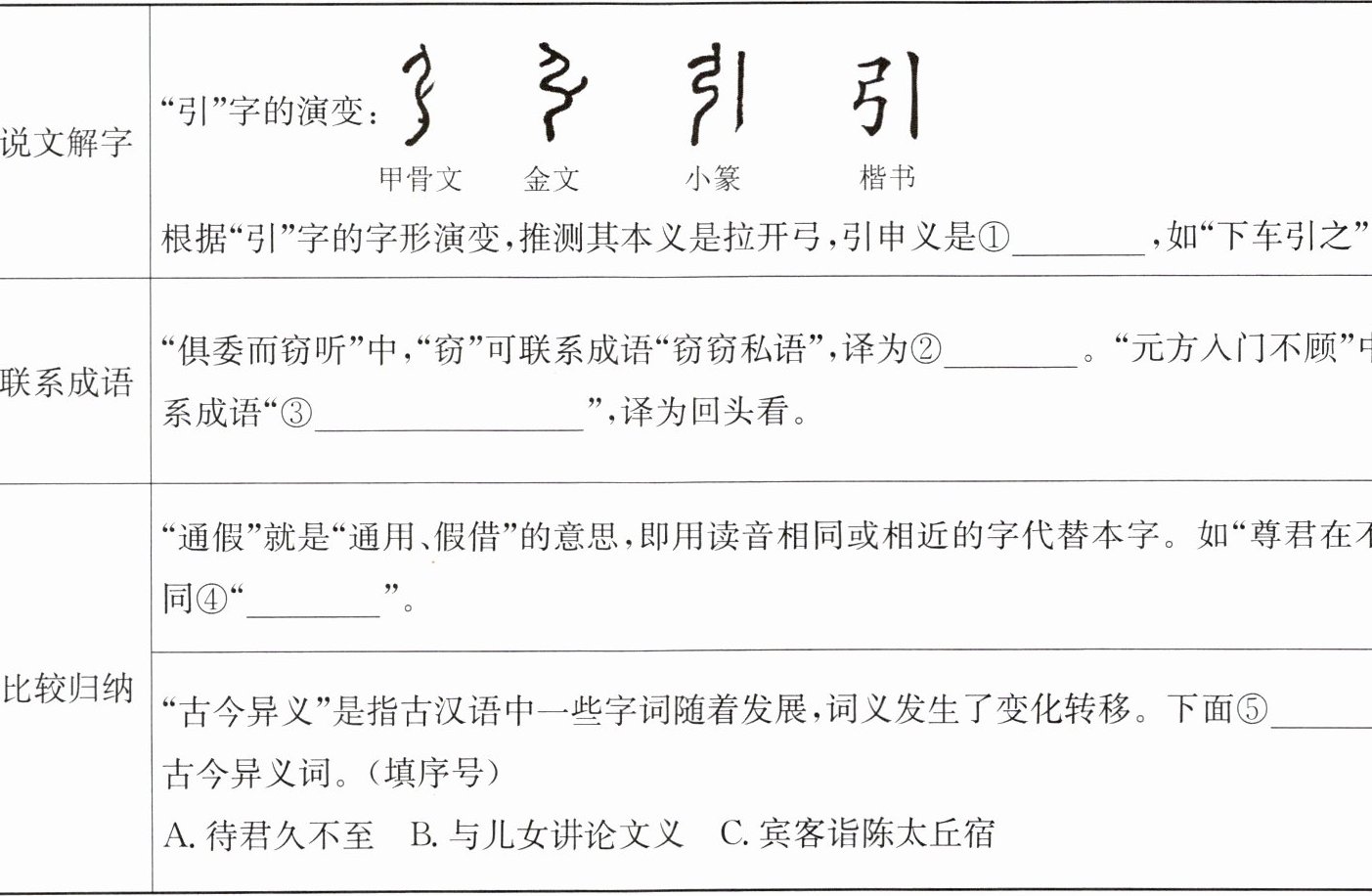 ★1.【任务一:积累词语】积累文言词语,做到触类旁通。运用表格法,整理文言字词。(5 分)