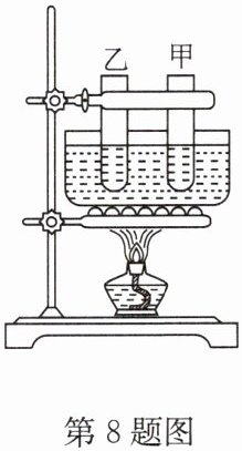 8. 如图所示,烧杯内盛有适量水并用酒精灯加热(标准大气压下),甲试管盛有水,乙试管盛有酒精,则甲、乙两试管中的液体( )